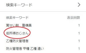 おじさん自身の職業が警備員なので、やっぱりおじさんと同じく警備員をしているっぽい人の検索がとても多いです。