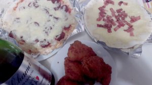ピザは大手宅配店の物は高いし、注文が殺到していると思うので…スーパーで安いピザを買ってサラミやチーズなんかを自分でトッピングし、贅沢さを演出!