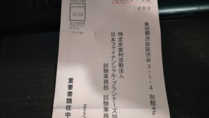 そんな中、日本ファイナンシャル・プランナーズ協会様から中止になった試験の試験料の払い戻しの通知書が来ました。