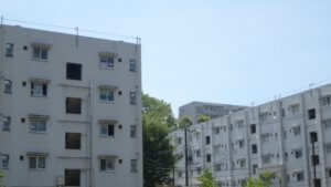 そして配送車を走らせ…その「キツくなる」の現地へ到着!そこは大きな集合団地の様な所でした。