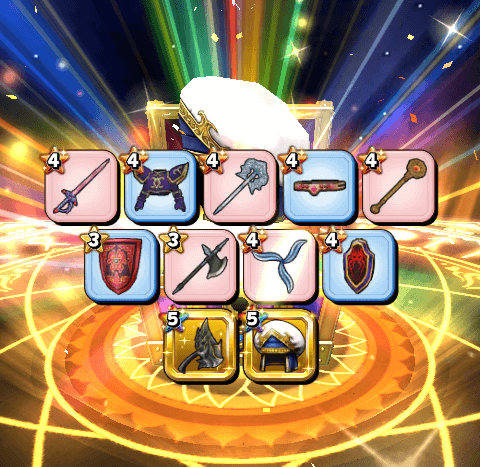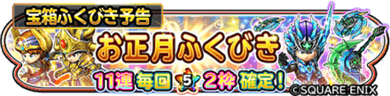 星ドラの福引きは普段は10連で確定1枠以外の☆5装備が出る確率も7%~10%なのでうが、お正月中という事もあり福引き回数は10連→11連に変化し、☆5確率も12.5%までアップしています!