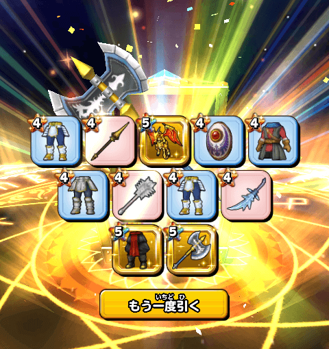 でも自分としては欲しかった「黄金竜の槍」が出なかったのが悔やまれますねぇ…。