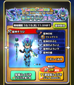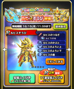 前日の13日(土)にやってたギガ前夜祭ステージにて、「ルビスの剣」「ルビスの弓」の錬金と覚醒の発表、そして完全新規装備「星神シリーズ」の実装やらで相当盛り上がったみたいなので…何を引くか迷ってしまうところですね(笑)