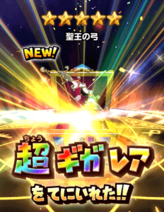 来た!「聖王の弓」!欲しかった「剣」でも「ハンマー」でもなかったけど、まぁ目玉装備を引けたので良しとしましょう!使いたい時が来るかもしれないしね!
