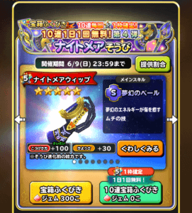 6/8(土)、6/9(日)は「ナイトメア」装備ガチャが来ました!この装備はドラクエ10が初登場だと思うのですが、あちらでの名称は「アンノウン」装備といって、ある超強力なボス的は倒して素材を集める事によってGET出来る「ドレスアップ装備」という…言わば見た目専用の装備です。
