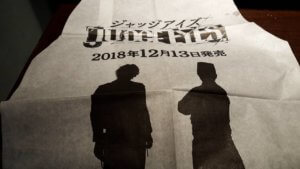 具体的にどういうコラボなのかというと、まず店舗の紙エプロンがジャッジアイズ仕様になっています!