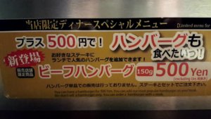 今回はおじさんは「ヒレステーキ300グラム」と「ワイルドハンバーグ300グラム」を注文しました!