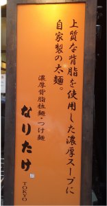 今回は都内に用事があった為に以前行ってみて、あまりの濃さに戦慄を受けた俗に言う背脂チャッチャ系ラーメン「なりたけ」に行ってきました!