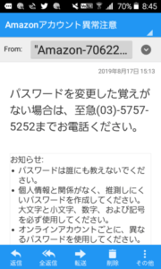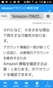 @rosenburg_o最近しつこいくらいAmazon(偽)から架空請求だか詐欺だかアカウント乗っ取りだかのメールが来て鬱陶しい(´・ω・`) #架空請求 #詐欺メール #Amazon偽装