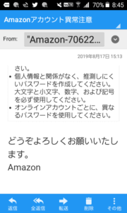 このメールが届いたアドレスではAmazonは使っていませんので、こんなメールが届く時点でおかしいのです(笑)