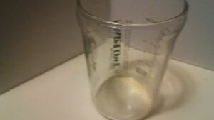 ただビンに入ったままだと色とか解らないので…とりあえず透明なグラスに移して観察してみる事にしました♪