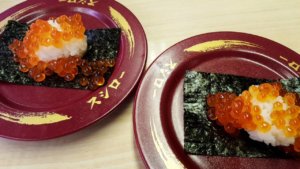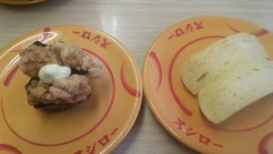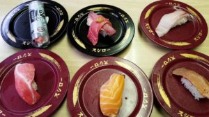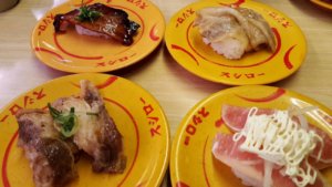 これ以外にも変わり種メニューしては、「えびバジルチーズ」とか「若鳥グリルステーキ」とか「えびアボガド」、「黒門伊勢屋のわさびなす」なんかもあり、大人も子供も大好きなサーモンのお寿司に至っては普通の「サーモン」はもちろん、「オニオンサーモン」「焼きとろサーモン」「おろし焼きとろサーモン」「ジャンボとろサーモン」「サーモンちーず」「炙りサーモンバジルチーズ」「サーモン・焼きとろサーモン」ととにかくメニューが豊富でした!