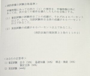 筆記試験は3つの項目が全て40%超えている必要があるらしく、基礎知識と構造機能の80%は良い出来だと思いますが…法令の30%で足きりに合ってしまいました><。